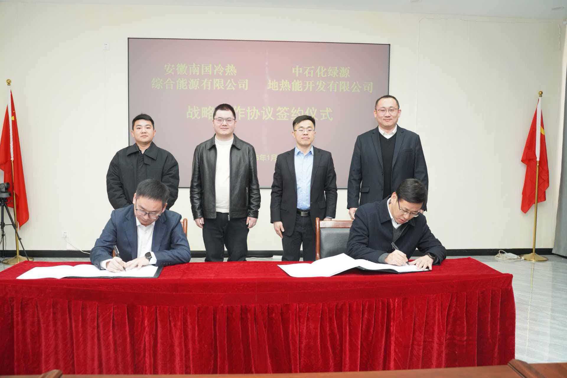 2026 年 1 月 23 日,雄安新区迎来地热产业高质量发展的里程碑时刻 —— 中石化绿源地热能开发有限公司(以下简称 “中石化绿源”)与安徽南国冷热综合能源有限公司(以下简称 “南国冷热”)正式签署战略合作框架协议。中石化绿源董事长、党委书记高小荣与南国冷热董事长王光临代表双方签约,中石化绿源副总经理卢星辰、卢志远,发展计划部(市场开发部)经理周伟鹏,南国冷热技术研发总监王中鹏、地热数智化事业部总监王鑫共同见证这一重要时刻。此次签约,标志着我国地热产业正式迈入 “数智驱动、价值跃升” 的全新发展阶段,开启由 “资源开发” 向 “价值运营” 的系统性变革。